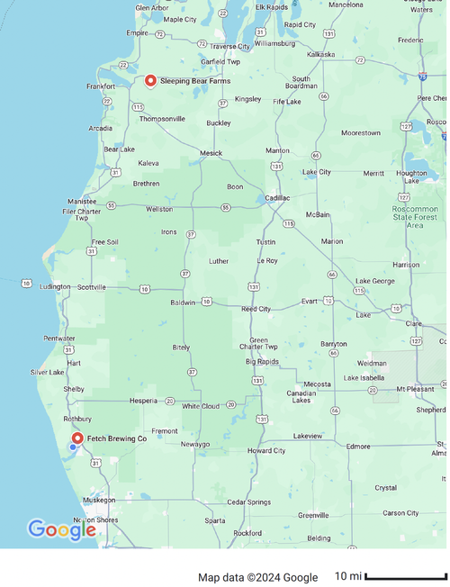 Our spent grain from the beer-brewing process has been sourced from our local brewery, Fetch Brewing Co., in Whitehall, MI. Spent grain is leftover grains and malted barley that breweries use to make beer. It's the main byproduct of the brewing process, making up about 85% of the total waste material.